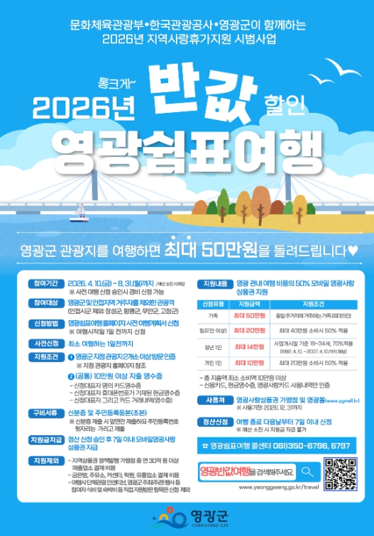 | ▲ , 「2026년 반값 할인 영광 쉼표 여행」 4월 신청 조기 마감 |