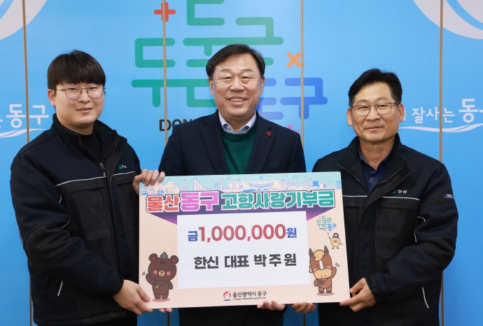 [뉴스앤톡] 울산 동구는 12월 2일(화) 오전 10시 한신 박주원 대표가 김종훈 동구청장을 만나 고향사랑기부금 100만 원을 기탁했다.