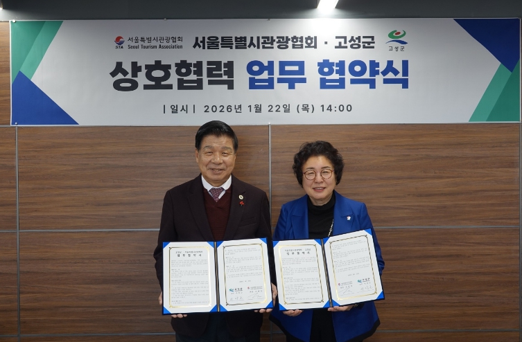 [뉴스앤톡] 경남 고성군은 1월 22일 서울특별시관광협회 회의실에서 서울특별시관광협회(회장 조태숙)와 지역 관광 활성화 및 관광산업 발전을 위한 업무협약(MOU)을 체결했다고 밝혔다.