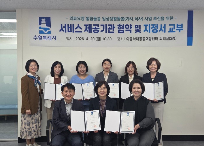 수원시 관계자는 “시민이 살던 곳에서 건강한 일상을 보낼 수 있도록 돕는 것이 통합돌봄의 핵심”이라며 “시민 누구나 체감할 수 있는 촘촘한 사회안전망을 구축하겠다”고 말했다.
