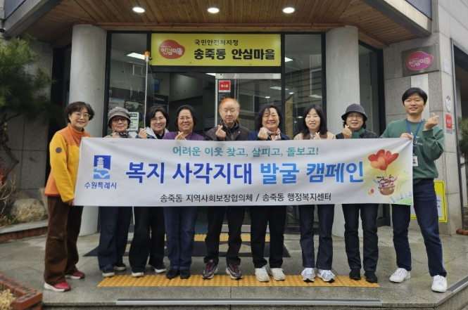 [뉴스앤톡] 수원시 장안구 송죽동은 지난 18일, 송죽동 행정복지센터 일대와 만석공원 주변에서 ‘복지사각지대 발굴 캠페인’을 실시했다.