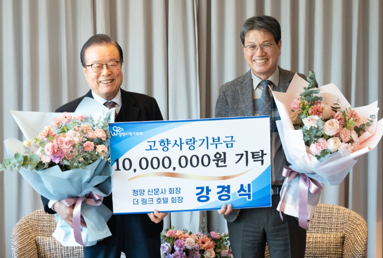 [뉴스앤톡] 청양군은 강경식 더 링크 호텔 회장이 19일 고향사랑기부금 1천만 원을 기부했다고 밝혔다.