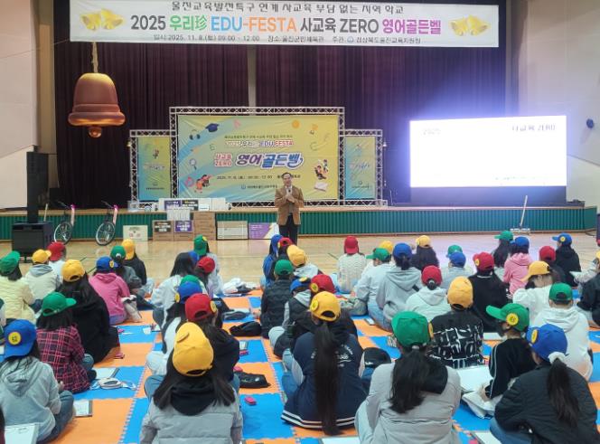 [뉴스앤톡] 울진교육지원청은 11월 8일 오전 9시, 울진군민체육관에서 울진 관내 초등학생 5~6학년 100여명을 대상으로 '2025 우리珍 에듀 페스타 ‘사교육 ZERO 영어골든벨’'을 개최했다.