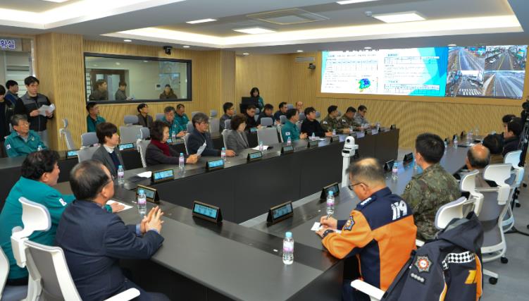 총 50평 규모로 조성된 재난안전상황실은 전담인력 8명이 24시간 상시근무 체계로 운영되며, 전담인력 사무공간과 재난안전대책본부 회의실을 함께 갖추고 있다.
