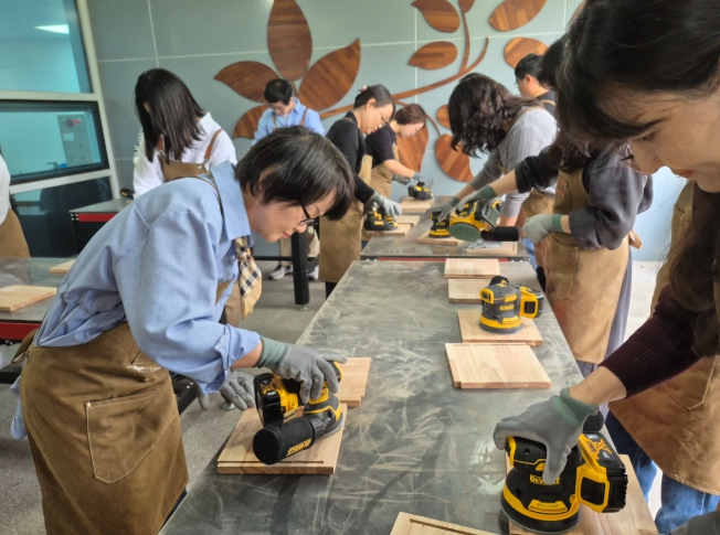 참가자들은 늘봄학교의 핵심 방향과 현장 적용 사례를 중심으로 한 강의를 통해 정책의 실질적인 운영 방법을 익혔으며, 이어진 목공 체험에서는 원형 사이드테이블 제작 실습을 통해 창의성과 협업 능력을 기를 수 있는 시간을 가졌다.