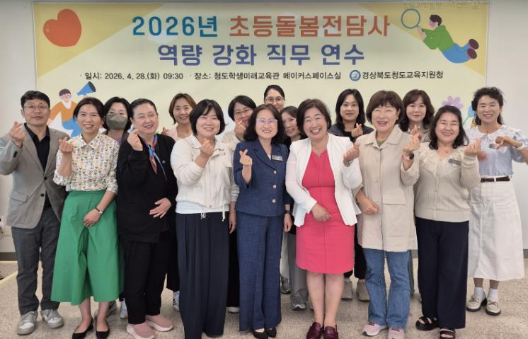 [뉴스앤톡] 청도교육지원청은 4월 28일 관내 초등학교11명의 초등돌봄전담사를 대상으로 ‘2026년 초등돌봄전담사 역량 강화 연수’를 실시하고, 성인지 감수성 향상을 위한 교육을 진행했다.