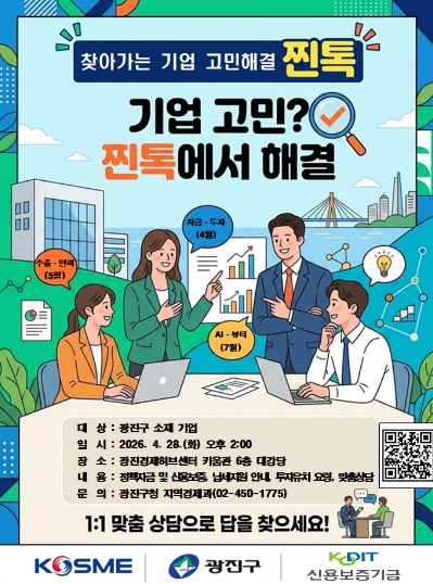 [뉴스앤톡] 광진구가 중소벤처기업진흥공단과 협력하여 관내 기업들의 경영 애로사항을 현장에서 해결하는 '중소기업·스타트업 찐(眞)톡(Talk)' 프로그램이 본격 시행된다.
