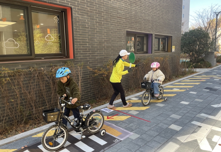아이들은 안전한 출발‧정지 방법, 자전거 기본 조작법, 올바른 통행 요령 등을 놀이형 방식으로 자연스럽게 익히며 눈높이에 맞춘 집중 교육을 받았다. 교육을 수료한 유아에게는 이수증도 전달해 성취감을 더했다.