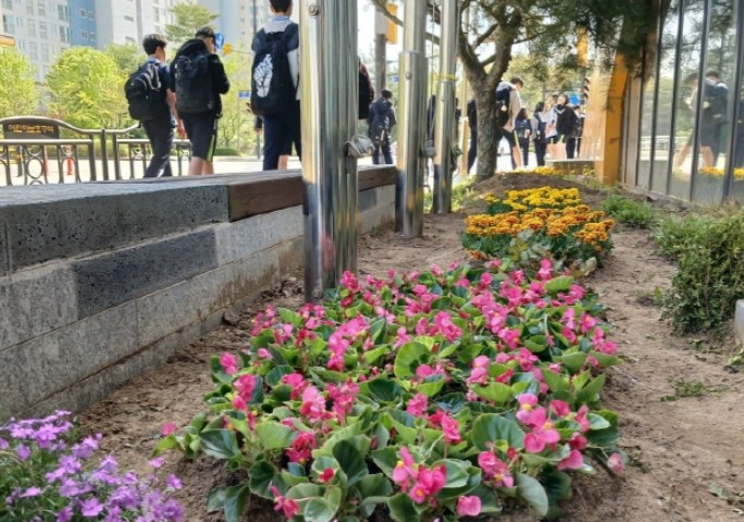 신원도서관은 지난 20일, 도서관 진입로의 외부 화단과 2층 휴게공간에 화사한 색감의 베고니아(빨강, 분홍)와 메리골드(노랑) 등 봄꽃 350여 본을 식재했다. 특히 회양목과 조화롭게 배치된 작은 정원은 시민들의 도서관 이용 만족도를 높일 것으로 기대된다.