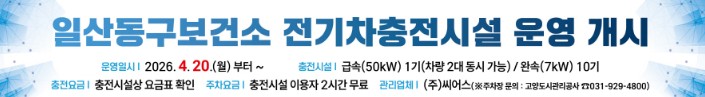 [뉴스앤톡] 고양특례시 일산동구보건소가 오는 20일부터 전기차충전시설 운영을 본격적으로 시작한다.