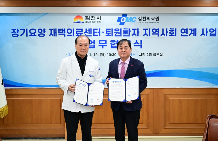 [뉴스앤톡] 김천시는 1월 19일 김천의료원과 함께 ‘장기요양 재택의료센터 시범사업’과 ‘퇴원환자 지역사회 연계 사업’ 추진을 위한 업무협약을 체결했다.