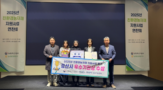 [뉴스앤톡] 경산시는 27일 세종시 코트야드 메리어트에서 열린 농림축산식품부 주관의 2025년 친환경농자재 지원사업 연찬회에서 '친환경농자재 지원사업 평가' 우수 기관상을 수상했다고 밝혔다.