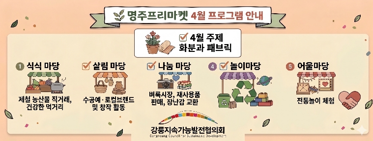 [뉴스앤톡] 강릉지속가능발전협의회(상임회장 김태경)가 주최·주관하는 '2026년 4월 명주프리마켓'이 오는 18일 11시부터 16시까지 강릉 대도호부 관아에서 개최된다.