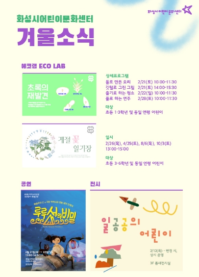 | ▲ 화성시어린이문화센터 에코랩과 전시 및 공연 안내문 |