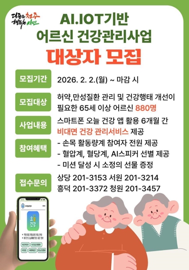 | ▲ 청주시, AI·IOT 기반 어르신 건강관리사업 참여자 880명 모집 |