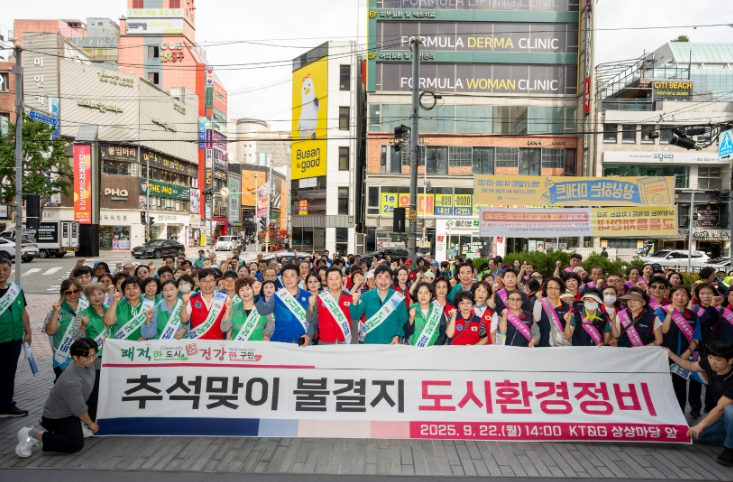 [뉴스앤톡] 부산진구는 지난 22일 서면1번가 일원에서 공무원, 새마을회·바르게살기협의회·한국자유총연맹 유관단체와 주민 등 약 150명이 참여한 가운데 추석맞이 도시환경정비 행사를 가졌다고 밝혔다.