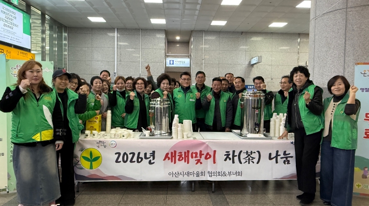 아산시새마을회는 설과 추석 등 명절마다 온양온천역에서 무료 차 나눔 봉사를 정기적으로 이어오고 있으며, 지역사회 나눔 문화 확산에 앞장서고 있다.