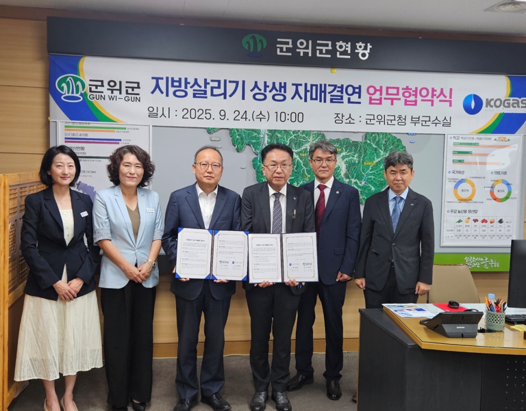 [뉴스앤톡] 군위군과 한국가스공사(사장 최연혜)는 9월 24일 수요일 오전 10시 군위군청 부군수실에서 지방살리기 상생 자매결연 업무협약을 체결했다. 지방살리기 상생 자매결연 업무협약은 비수도권 인구감소지역의 경제 활성화와 인구 유입을 위해 중앙정부와 공공기관, 지자체가 협력하는 공식 협약이다.