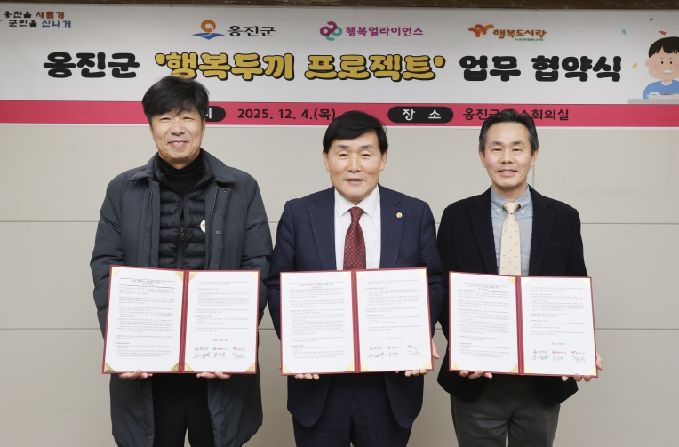 [뉴스앤톡] 옹진군은 지난 4일, 관내 결식 우려 아동의 발굴 및 지원을 위한 '옹진군 행복두끼 프로젝트'업무협약을 행복얼라이언스, 행복도시락사회적협동조합과 체결했다고 밝혔다.
