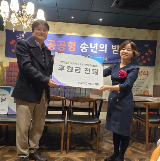 [뉴스앤톡] 부천시 공공형어린이집연합회가 지난 24일 개최된 공공형어린이집 송년의 밤 행사에서 춘의종합사회복지관에 이웃사랑 후원금을 전달하며 2년 연속 나눔 활동을 이어갔다.