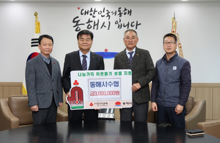 [뉴스앤톡] 동해시수산업협동조합(조합장 김동진)은 지난 11월 김장김치 기탁에 이어 다시한번 지역사회 나눔에 희망2026나눔캠페인에 동참하며 이웃돕기 성금 300만원을 동해시에 기탁했다.