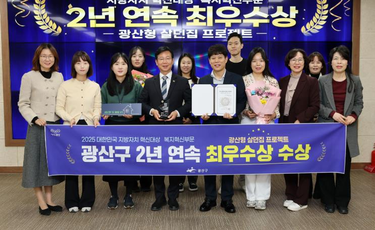 [뉴스앤톡] 광주 광산구 ‘살던집 프로젝트’가 ‘대한민국 주거복지문화대상’ 종합대상에 이어 ‘2025 대한민국 지방자치 혁신대상’ 최우수상에 선정되며, 복지 혁신 평가 ‘2관왕’에 올랐다.