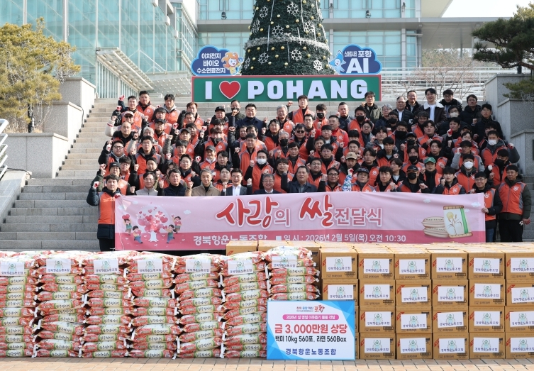 [뉴스앤톡] 포항시는 5일 경북항운노동조합(위원장 김철성)이 설 명절을 맞아 소외된 이웃을 위해 3천만 원 상당의 백미(10kg) 560포와 라면 560박스를 기탁했다고 밝혔다.