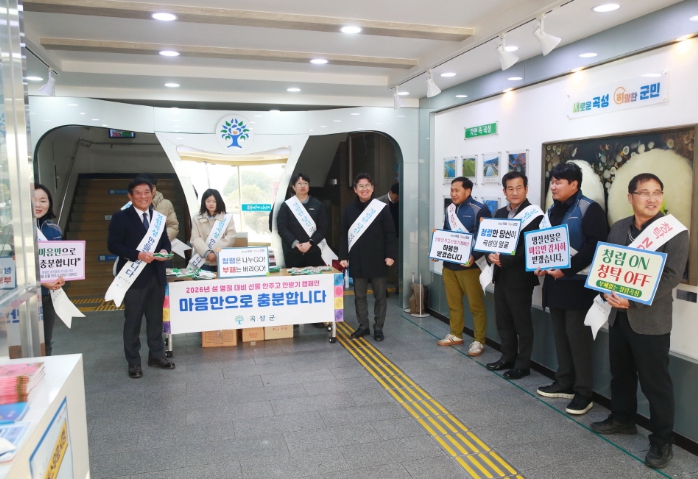 [뉴스앤톡] 전남 곡성군은 설 명절을 앞둔 지난 4일, 청사 출입구 앞에서 ‘선물 안 주고 안 받기’ 메시지를 내걸고 청렴 캠페인을 전개했다고 밝혔다.