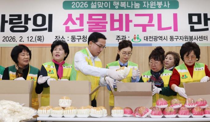 [뉴스앤톡] 대전 동구는 12일 동구청 후생관에서 동구자원봉사센터 주관으로 설 명절 맞이 ‘사랑의 선물바구니’ 제작 행사를 개최했다고 밝혔다.