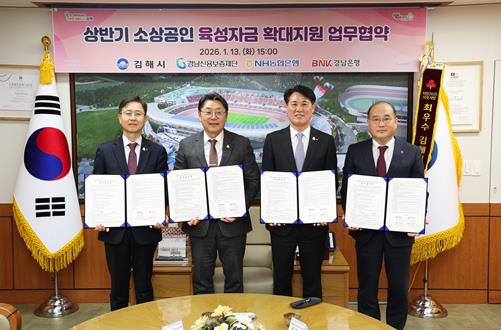 [뉴스앤톡] 김해시는 13일 김해시청에서 NH농협은행, BNK경남은행, 경남신용보증재단과 ‘2026년 상반기 소상공인 지원 업무협약(MOU)’을 체결했다.