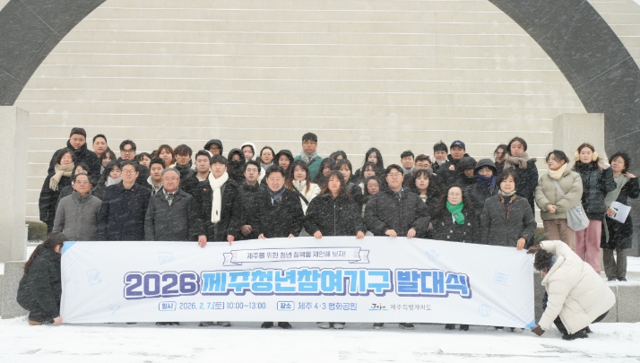 제주도는 7일 제주4·3평화공원에서 ‘2026 제주청년참여기구 발대식’을 개최하고, 청년이 직접 정책을 제안하고 도정과 함께 실행하는 청년 주도 정책 참여 활동을 본격 시작했다.