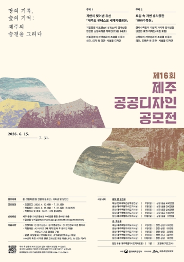 박재관 제주도 건설주택국장은 “제주 공공공간의 특성과 가치가 디자인을 통해 더욱 돋보이고, 우수한 아이디어가 실제 정책에 반영되어 도민의 삶에 자연스럽게 스며들 수 있기를 기대한다”며 많은 참여를 당부했다.