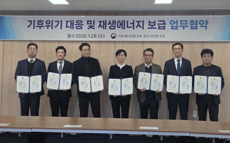 [뉴스앤톡] 충북도는 28일 원주지방환경청, 강원특별자치도 및 에너지 공기관과 함께 기후위기 대응 역량을 강화하고 재생에너지의 안정적인 보급 확대를 위한 업무협약을 체결했다.