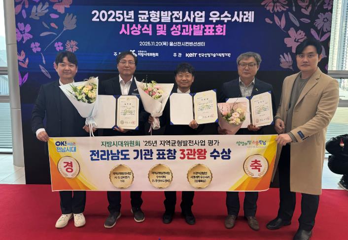[뉴스앤톡] 전라남도는 대통령직속 지방시대위원회에서 주최하는 2025년 균형발전사업 우수사례 시상식에서 전국에서 유일하게 3개 부문을 모두 수상했다고 밝혔다.