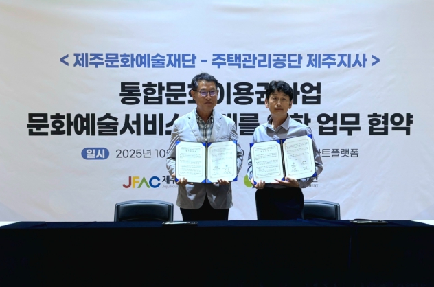 [뉴스앤톡] 제주문화예술재단과 주택관리공단 제주지사는 지난 13일 통합문화이용권 사업(문화누리카드)과 연계한 문화예술 서비스 확대를 위해 업무협약을 체결했다.
