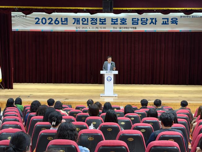 울산교육청은 23일 울산과학관 빅뱅홀에서 전 기관과 학교 담당자 300여 명을 대상으로 ‘2026년 기관(학교) 개인정보 보호 담당자 교육’을 진행했다.