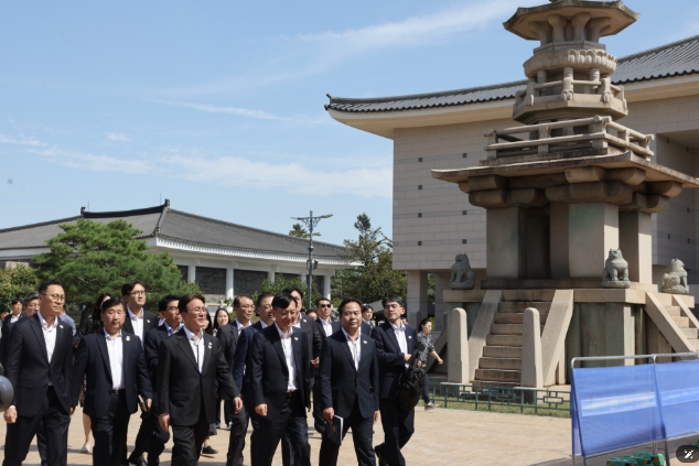 | ▲ 김민석 국무총리가 26일 APEC 정상회의 준비상황 점검차 경주 화백컨벤션센터(HICO), 엑스포대공원, 국립경주박물관 등을 방문, 현장을 점검하고 있다.(국무조정실) |