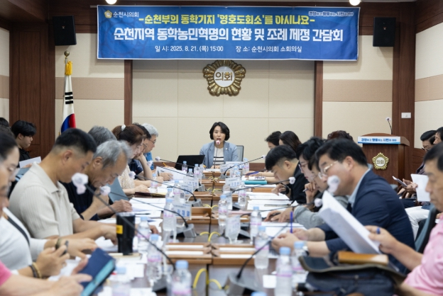 [뉴스앤톡] 순천시의회 문화경제위원회(위원장 김미연)는 지난 21일 순천시의회 소회의실에서 순천지역 동학농민혁명의 현황 및 조례안 제정 간담회를 개최했다.