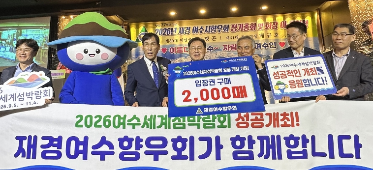 [뉴스앤톡] (재)2026여수세계섬박람회조직위원회는 지난 26일 재경여수향우회 회장 이취임식에서 향우회와 2,200만 원 상당의 입장권 구매약정을 체결했다.