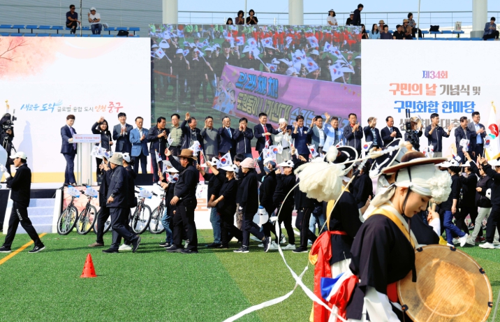 올해로 34회를 맞은 구민의 날 행사는 중구 12개 동의 주민들이 모두 모여 함께한 가운데 식전공연, 기념식, 구민상 시상, 생활체육 대축전 등 다채로운 프로그램으로 진행되며 구민 모두가 어울릴 수 있는 축제의 장이 됐다.