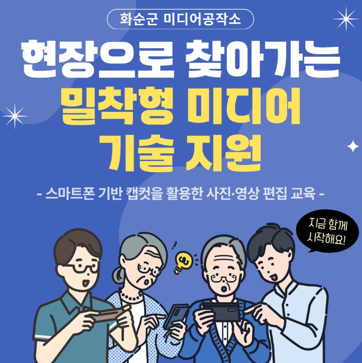 [뉴스앤톡] 화순군은 1월부터 4월까지 관내 13개 읍·면 군민을 대상으로 ‘찾아가는 미디어공작소 교육’을 운영한다고 밝혔다.