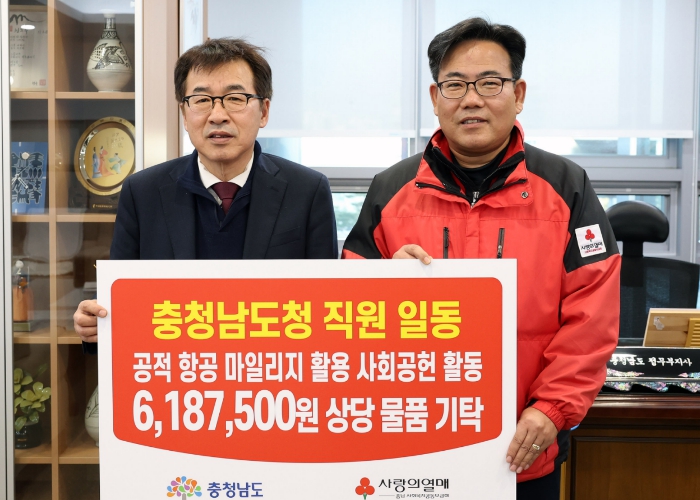 도는 22일 도청에서 전형식 정무부지사와 충남사회복지공동모금회 관계자 등이 참석한 가운데, 공적 항공마일리지 활용 물품 전달식을 개최했다.