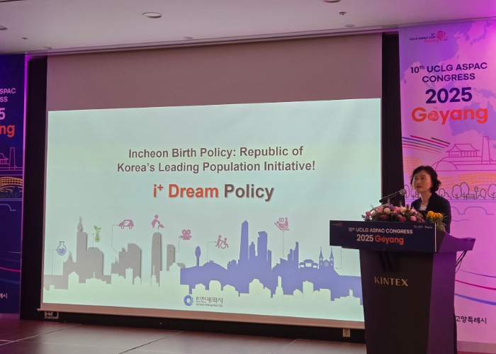 [뉴스앤톡] 인천광역시는 2025년 9월 24일부터 26일까지 고양 킨텍스 제1전시장에서 열리는 '2025년 제10차 세계지방정부연합 아시아‧태평양지부(UCLG ASPAC) 고양총회'에 참가해, ‘가족친화도시: 출산율 증가 및 가족지원에 적합한 도시환경 조성’을 주제로 한 서브포럼에서 인천형 출생정책의 성과를 세계 지방정부와 공유했다고 밝혔다.