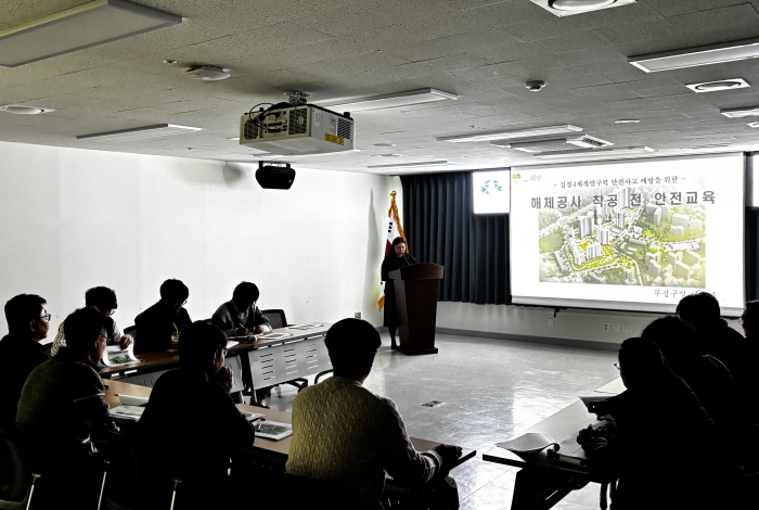[뉴스앤톡] 부평구는 23일 구청에서 십정4구역 재개발사업 공사관계자 등 11여 명을 대상으로 ‘십정4구역 해체공사 착공 전 안전교육’을 진행했다.