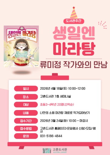[뉴스앤톡] 김포시 고촌도서관은 4월 18일 오전 10시에 초등학생 3~4학년을 대상으로 '오늘은 내가 마라탕 책 요리사'를 운영한다.