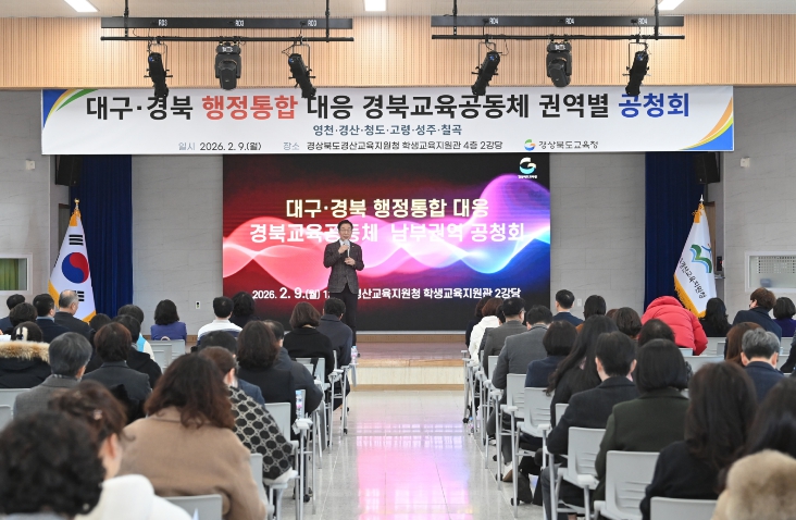[뉴스앤톡] 경북교육청은 9일 경산시에 있는 경산교육지원청 학생교육지원관에서 남부권역(경산.영천.청도.고령.성주.칠곡) 교직원과 학부모 200여 명이 참석한 가운데 ‘대구-경북 행정통합 대응 경북교육공동체 권역별 공청회’ 첫 일정을 개최했다고 밝혔다.