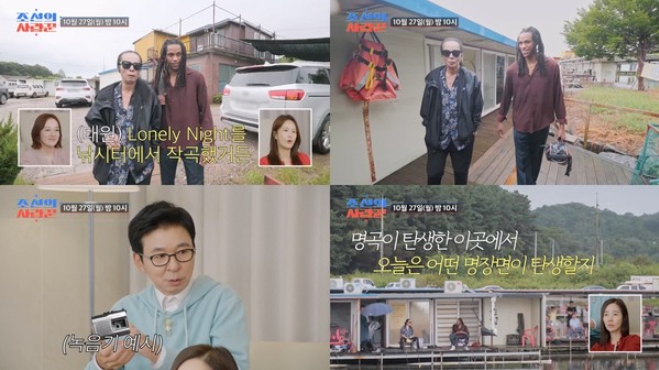 27일(월) 방송될 ‘조선의 사랑꾼’ 선공개 영상에서는 마침내 딸과 한국에서 함께하게 된 김태원이 '뉴욕 사위' 데빈과 단둘이 낚시터에서 단란한 시간을 가진다. 김태원은 "내가 95년도에 박완규를 데리고 낚시터에 다녔으니까...'Lonely Night'를 낚시터에서 작곡했거든"이라며 명곡 탄생의 비밀을 밝혔다.