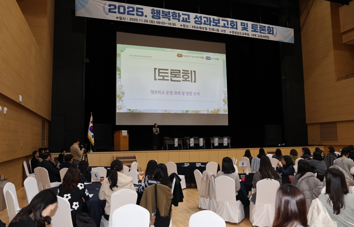 [뉴스앤톡] 경상남도교육청은 29일 KB손해보험 인재니움 사천에서 도내 행복(나눔·맞이)학교 담당자 및 교육지원청 관계자 300명이 참석한 가운데 ‘2025 행복학교* 성과보고회 및 토론회’를 개최했다.