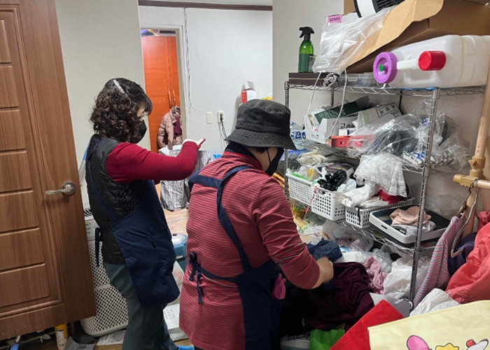 오전 10시 현장에 도착한 봉사대는 실내에 각종 짐이 가득 쌓여 이동이 어려운 상황을 확인하고, 통행 공간 확보를 위해 정리·수거 작업을 진행했다. 이후 바닥과 생활공간을 중심으로 청소를 실시하며 주거환경 개선을 도왔다.
