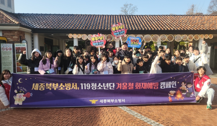 [뉴스앤톡] 세종북부소방서가 지난 29일 베어트리파크에서 불조심 강조의 달과 겨울철을 맞아 119청소년단과 함께 화재예방 캠페인과 소방안전교육을 진행했다.